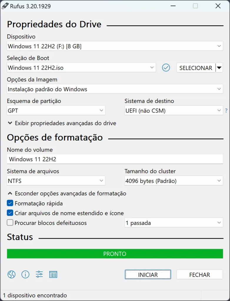 Seu pendrive bootável está pronto e personalizado para uma instalação rápida e sem perguntas chatas do Windows 11.